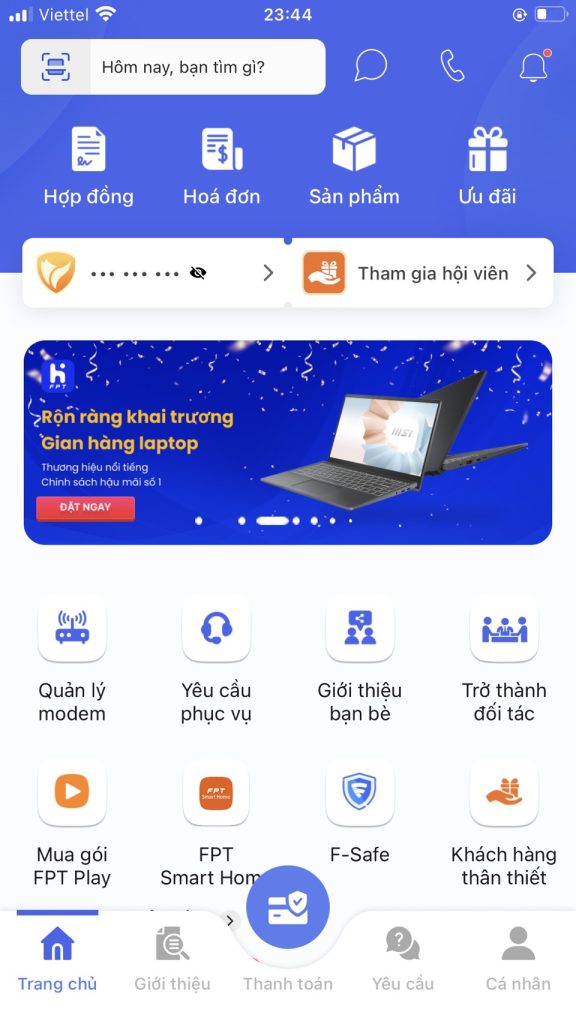 Bước 2: Mở ứng dụng HIFPT và đăng nhập bằng số điện thoại đăng ký hợp đồng.