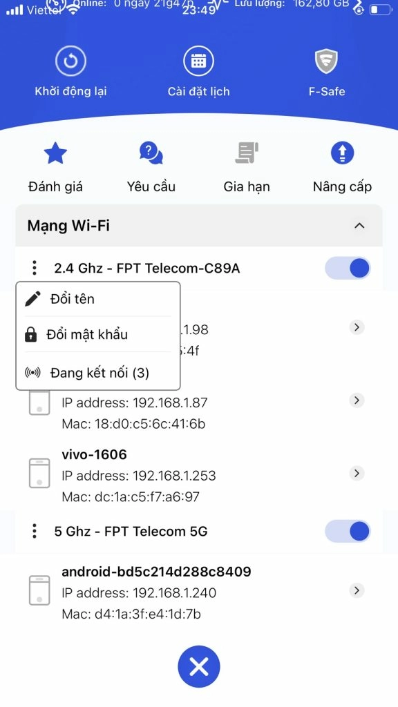 Hướng dẫn đổi mật khẩu wifi FPT trên ứng dụng HIFPT.