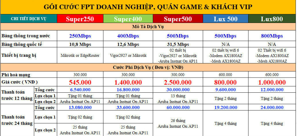 2.2 Các gói cước lắp mạng FPT Chung Cư 25 Tân Mai